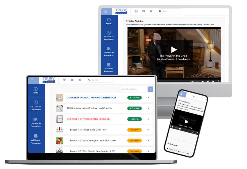 TMS Core Program: Foundational lessons plus the full Truby Management System: four phases that turn managers into leaders, people into teams, and processes into profit. Includes team-building tools you can put to work right away.